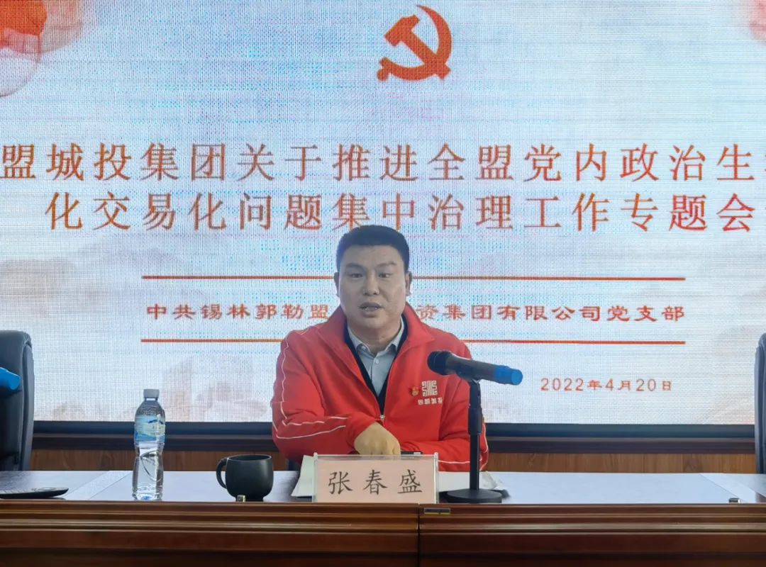 集團黨支部書記、董事長張春盛同志在會議總結講話時要求:全體黨員和干部要堅持以習近平新時代中國特色社會主義思想為指導,深入貫徹習近平總書記對內蒙古重要講話重要指示批示精神,全面貫徹新時代黨的建設總要求和新時代黨的組織路線。對照黨章和《關于新形勢下黨內政治生活的若干準則》規(guī)定,結合黨的十九大以來自治區(qū)查處的典型案例,列出“圈子文化”等11個方面的問題清單,集團各部門、子公司要壓實主體責任,堅持邊學邊做邊改,做好線索發(fā)現(xiàn)、常態(tài)提醒、選人用人工作;集團黨群事務部牽頭,成立工作專班,針對發(fā)現(xiàn)的問題,由集團監(jiān)察法務部門抓具體問題查處,根據(jù)問題清單提出具體措施,堅持當下改與長久立相結合,健全黨內政治生活庸俗化交易化問題發(fā)現(xiàn)、查處、整改全流程工作機制,確保全體黨員和干部嚴格遵守“十一嚴禁”,自覺做到“五個警惕”,實現(xiàn)“五個促進”,既堅持上下協(xié)同從嚴治部,又敢抓敢管,不斷增強黨內政治生活的政治性、時代性、原則性和戰(zhàn)斗性,為錫盟城投集團全年目標的實現(xiàn)和黨的二十大勝利召開營造風清氣正的政治環(huán)境。